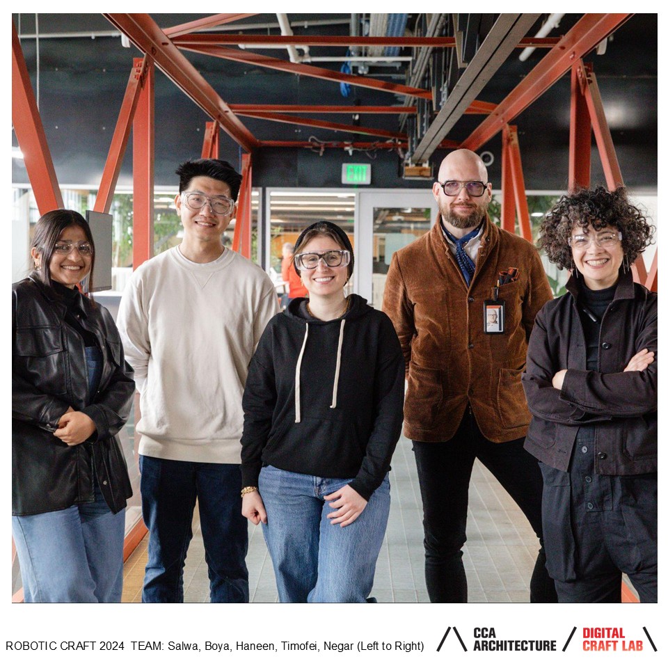 Robotic Craft is an advanced, yearlong design research course exploring the intersection of design, robotics, and materiality. Led by Professor Negar Kalantar, Co-Director of the Digital Craft Lab, this course connects MAAD students with peers from CCA’s MArch and BArch programs in a competitive, residency-style environment.