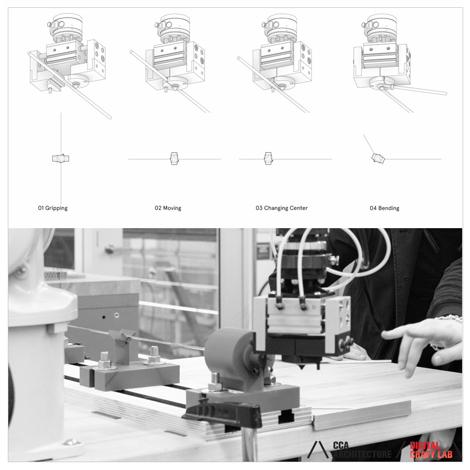 Each year, a select group of students collaborates with Autodesk’s San Francisco Technology Center, engineering custom robotic tools and developing full-scale fabrication workflows. Recent work includes custom pneumatic grippers, Grasshopper-controlled toolpaths, and iterative metal bending processes that challenge conventional digital construction methods.
